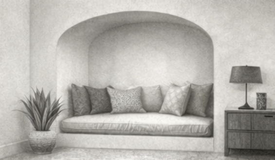 Application: Ensuring a hotel lobby accommodates reception, seating, and baggage handling efficiently.Alcove: A recessed area within a room, often used for seating, display, or sleeping.
